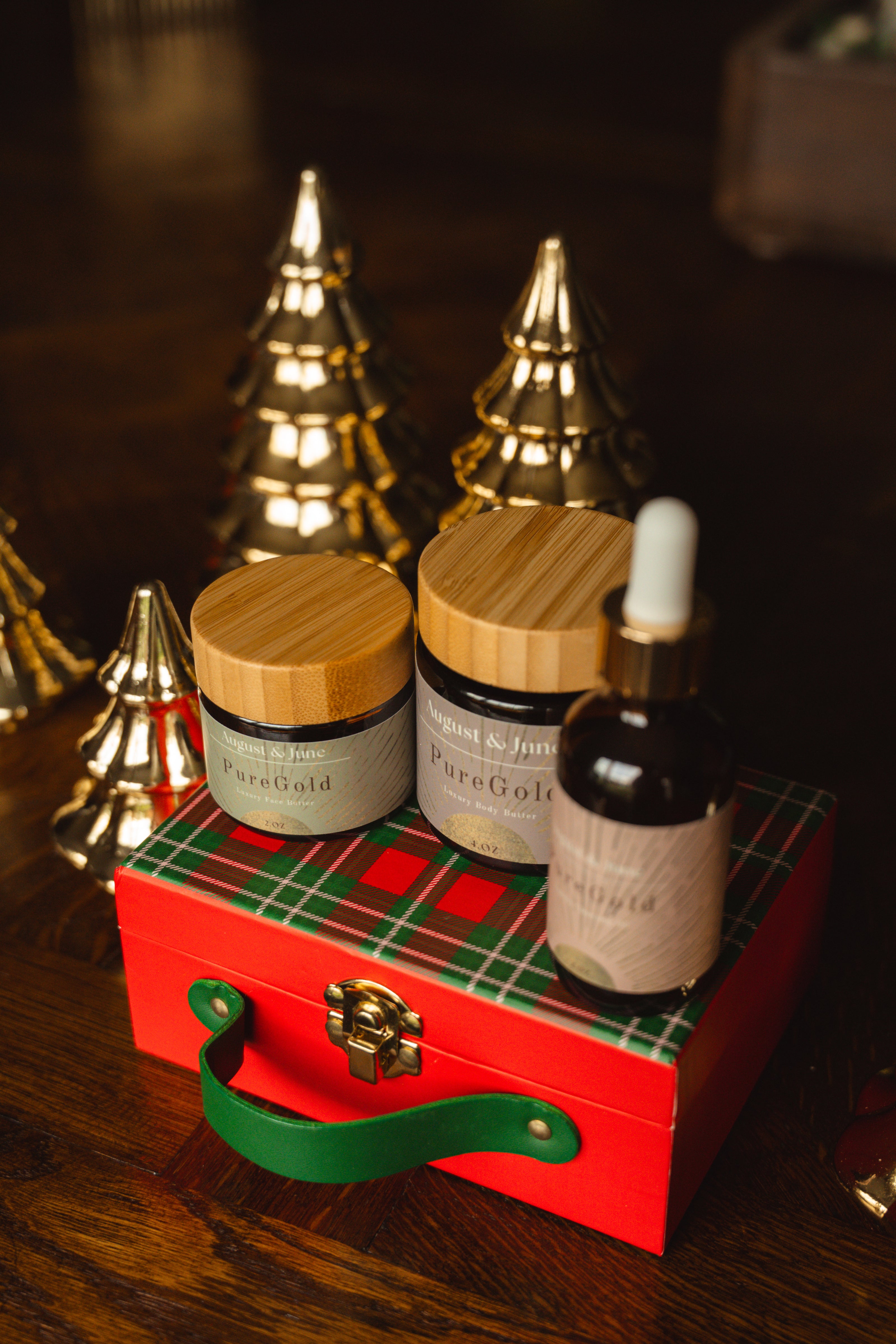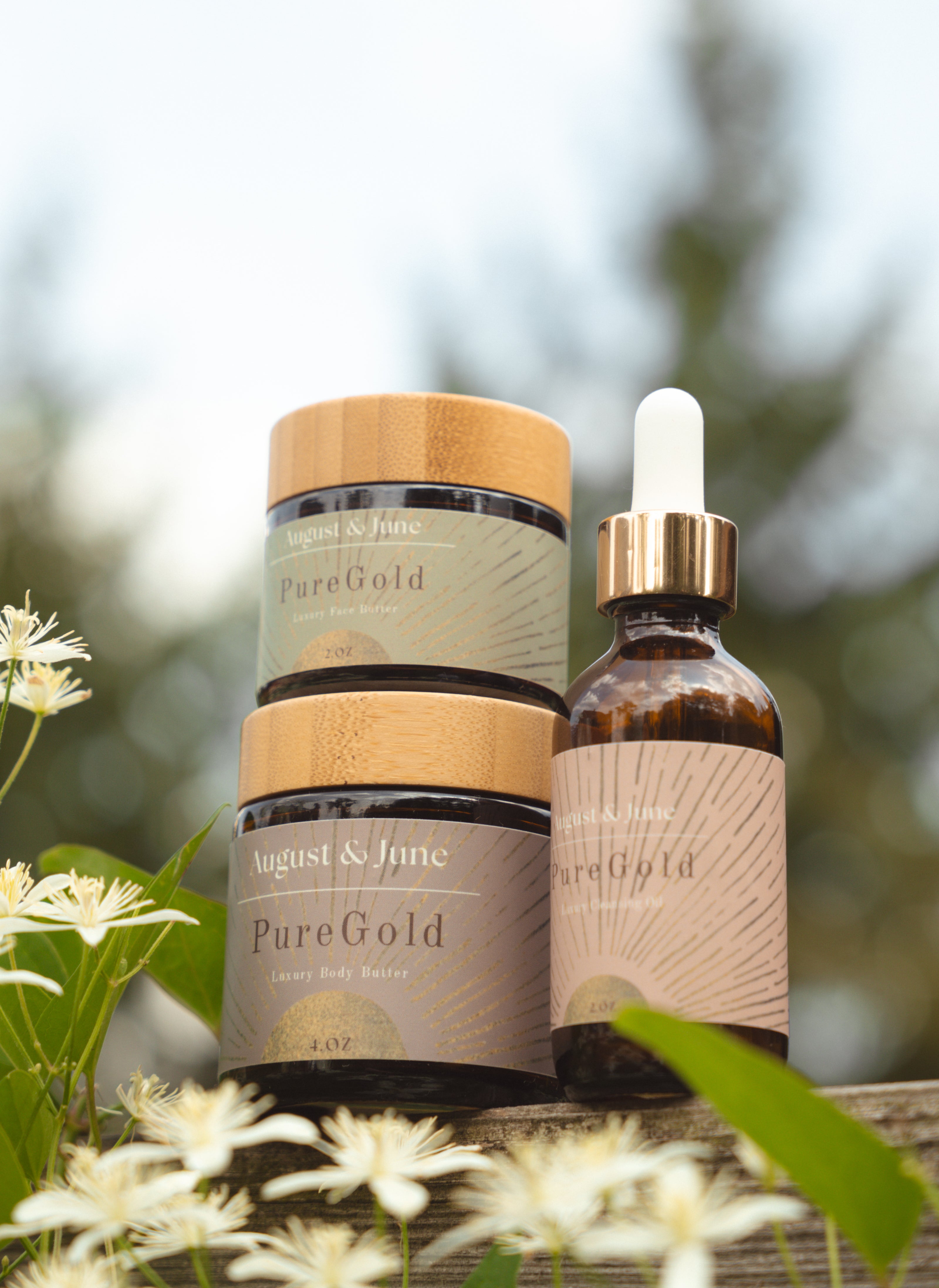 At August and June, we’re committed to creating clean and purposeful products even down to the package and delivery. Every aspect is chosen to reflect care and integrity. From first touch to final use, Pure Gold is crafted to nourish deeply, perform beautifully, and heal the body.