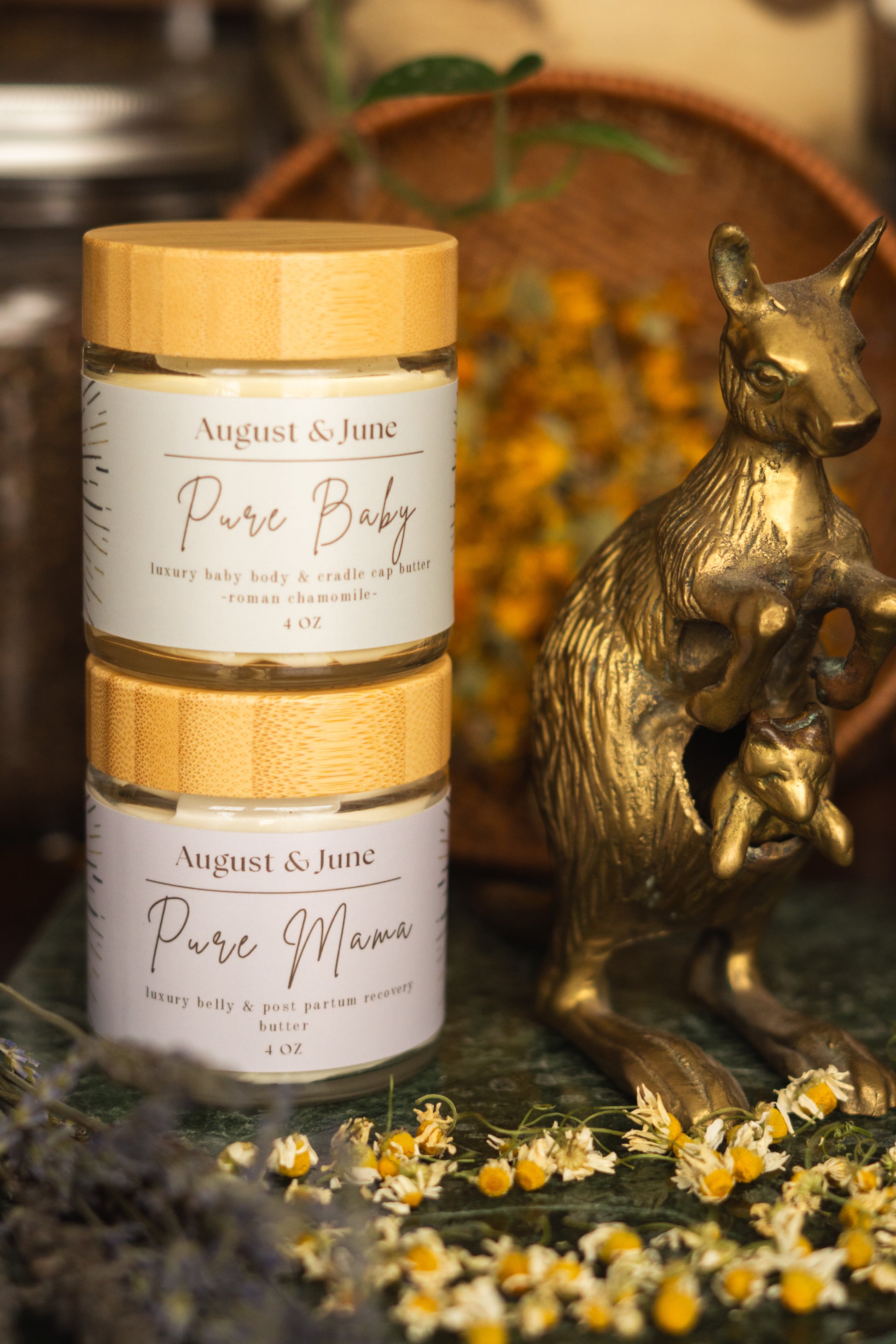 Pure Mama is a pregnancy-safe, 100% organic body butter formulated to deeply nourish and support skin through pregnancy, postpartum, and beyond.
